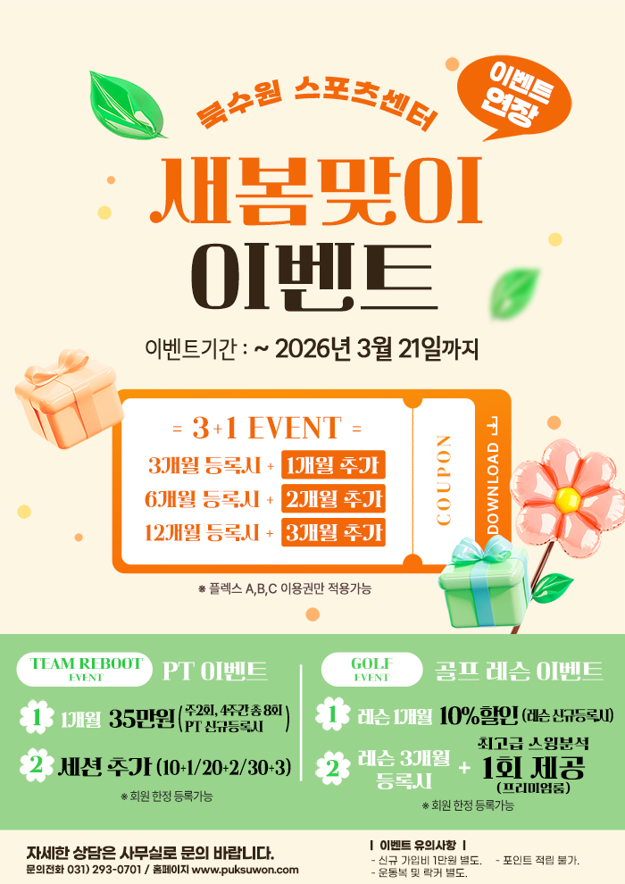 [북수원 스포츠센터] 새봄맞이 이벤트 기간연장
