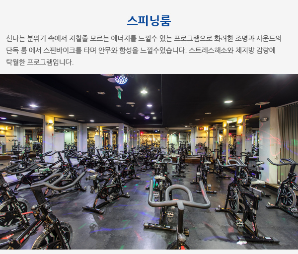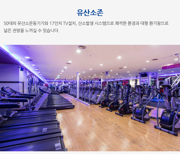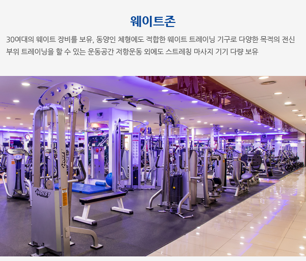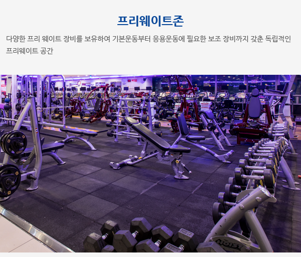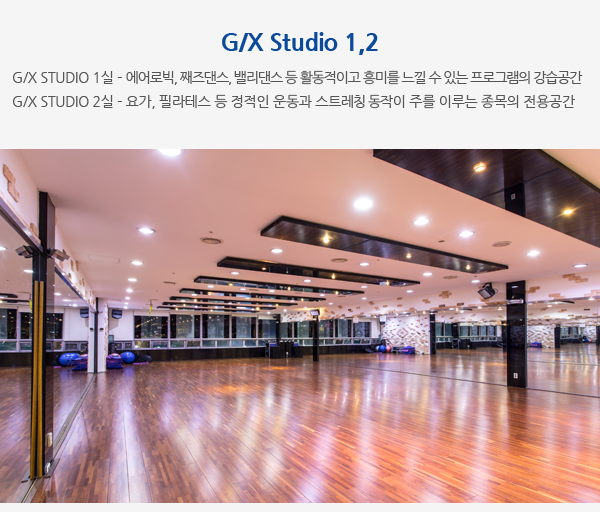 유산소존, 웨이트존, 프리웨이트존, 스피닝룸, 골프존, 스크린골프, G/X Studio 1, G/X Studio 2,